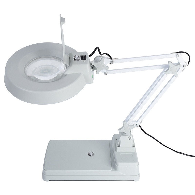 MAGNIFIER 20X TABLE TOP Size: Glass diameter 127mm Material: Glass Magnification: X20 Name:Desktop Magnifying Lamp Color:White Light: 1 LED Fluorescent Light Source:Fluorescent& LED