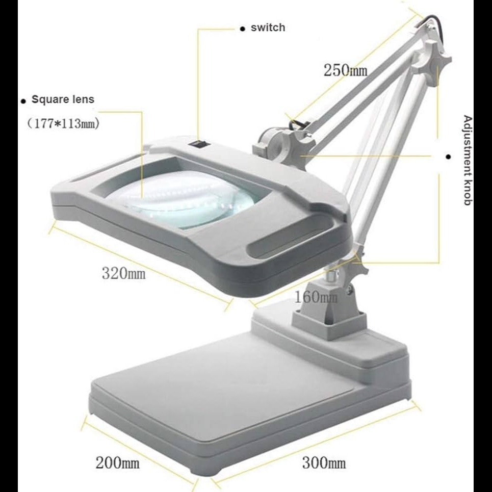 MAGNIFIER RECTANGULAR 10X TABLE TOP Size: Glass diameter 10.8 X 17 CM Material: Glass Magnification: X10 Name:Desktop Magnifying Lamp Color:White Light Source: LED