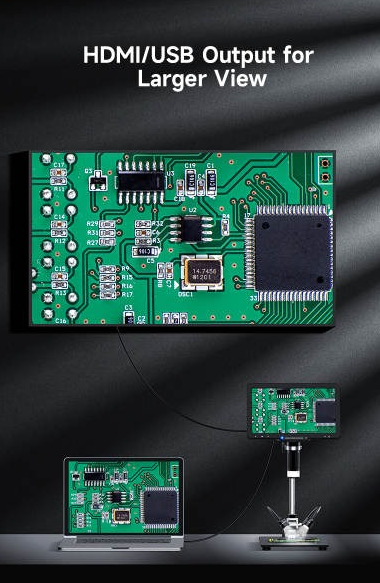 02 | GI LP101 | 10 INCH DISPLAY DIGITAL MICROSCOPE 1200X with HDMI/USB output Extra Led Lights and Batteries Specifications Video Maximum Pixel: 1080P Screen: 10.1-inch IPS LCD display with 1024*600 resolution Lens Optic Size: 1/2.8" Photo Resolution: 2M,3M,5M,8M,10M,12M,16M,20M, 24M, Video Resolution: 720P, 1080P Video Format: MP4 Focus Mode: Manual Picture Format: JPG Illuminant: 8 LED lights (brightness adjustable) PC Operating System: Windows 7, Windows 8.1, Windows10, Mac OS x 12 or higher Interface and Signal Transmission Mode: Micro/USB 2.0/ Mini HDMI Operating Temperature: -10°C~+55°C Operating Humidity: 30%-85%RH Working Current: 700mA Power Dissipation: 3.5W Language: English, French, Spanish, Portuguese, German, Italian, Simplified Chinese, Traditional Chinese, Russian, Japanese, Korean Work with TV Operating steps Step 1. Connect LP101 to the TV via a HDMI cable Step 2. After successful HDMI connection, the microscope will be turned on and the image will appear on the display. At this time, microscope button and remote-control button can be operated; when operating photo/video, the file will be automatically saved in TF card. Photo mode When the icon in the upper left corner of the microscope is Photo mode when the microscope is on, short press the Menu button on the microscope or short press the Photo button on the remote control, it can switch to Photo mode. Video mode When the icon on the upper left corner of the microscope is "it is in Video mode, when the microscope is on, short press the Menu button on the microscope or short press the Video button on the remote control, it can switch to Video mode Work with PC Software download - Download the applicable software Packing List Microscope, Bracket, Base, Type-C cable, Mini HDMI Cable, USB Cable, Straightdge, User Manual, Wireless Remote Control, ORIGIN: GABY INSTRUMENTS |