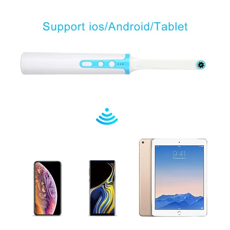 Wireless WiFi Oral Dental Camera 1080p HD Adjustable 8 LED Light wifi Intraoral Endoscope for Dentist Tool Feature: 1. Concise and generous,Compact and portable 2.It's easy to clean and disinfect with the split design. 3.Waterproof and dustproof with LED lights of high brightness. IP67 protection grade, can be disinfected with alcohol, and the whole body is waterproof 4. 800mAh large capacity battery, 120 minutes long working time 5. The image can zoom in and zoom out for 3 times 6. Free Apps for Android/iOS/Tablet/Windows system.Multi-function APP automatically connects, can take pictures, video, mirror, and compare Network standard: IEE 802.11 b/g/n Antenna: Built-in IPEX antenna Operating Frequency: 2.4GHz Data rate: up to 300 Mbps Image sensor: CMOS Camera light sourse: 8pcs Adjustable LEDS Battery: 800mAh lithium Battery Waterproof: IP67 (For lens only) focal length: 1.5cm Viewing angle: 70 degree Battery: 800mAh lithium Battery Waterproof: IP67 (For lens only) focal length: 1.5cm Viewing angle: 70 degree Operating temperature: 32 to 113 F(0-45 ) Working time: 1H Power input: DC 5V 500 mAh/1A Sensor pixels: 2 Million pixels Camera resolution: 1920*1080P